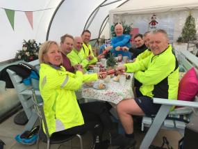 A very warm welcome awaited us at Mill End, Christmas crackers laid out on our reserved table and a free mince pie each! The cakes were as delicious as ever. On leaving one Wheeler forgot he had a Christmas hat on as he put on his helmet, but alas, our laughter soon turned into concern once we discovered not just a broken spoke but also a missing section of hub which the spoke fits into! Amongst the sponge cakes, a roll of helicopter tape just happened to be on hand in the tea room, which did the job. Confident of a sterling repair, we headed off, but 5 miles later another spoke went ping! The wheel was giving up! This time we used surgical tape from a first aid kit. After a few more miles the wheel was wobbling so much the rider thought he was on the Paris Roubaix cobbles, but he ploughed on before turning off for a short cut home (which may have actually been longer now I think about it, oops my advice!). I’m sure he made it back..