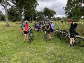 Down to 14 riders until Mark Sims turned up - I had to pinch myself. Then Rebecca turned up with her new bike - nothing like a new bike day.